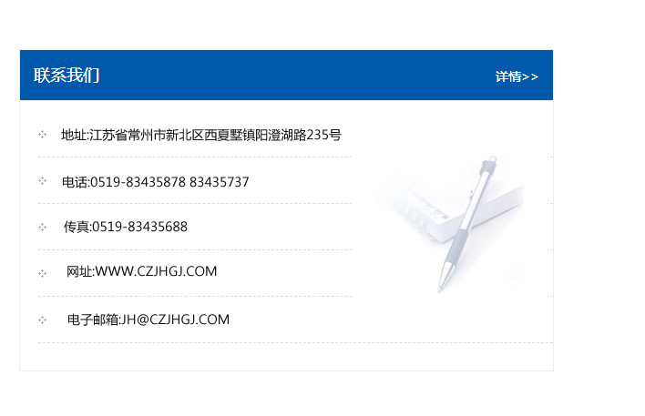 地址:常州市新北區友邦商務大廈1幢16、17層  電話:0519-85101652  傳真:0519-85112595  郵編:213022  網址:www.cz-jiayue_cn.qztota.com  郵箱:xiajifengaa@163.com